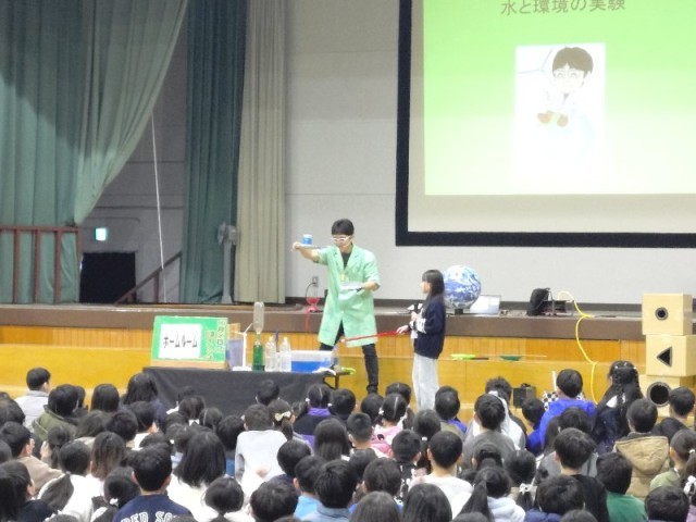 さらに、この日は「笑顔と学びの体験活動プロジェクト」として、『らんま先生のサイエンスショー』を鑑賞しました。