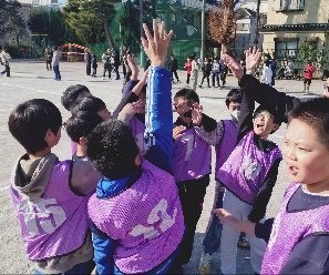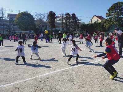 みんなで力を合わせてパスを回し、力強くボールを投げたり、避けたりしていきました。
