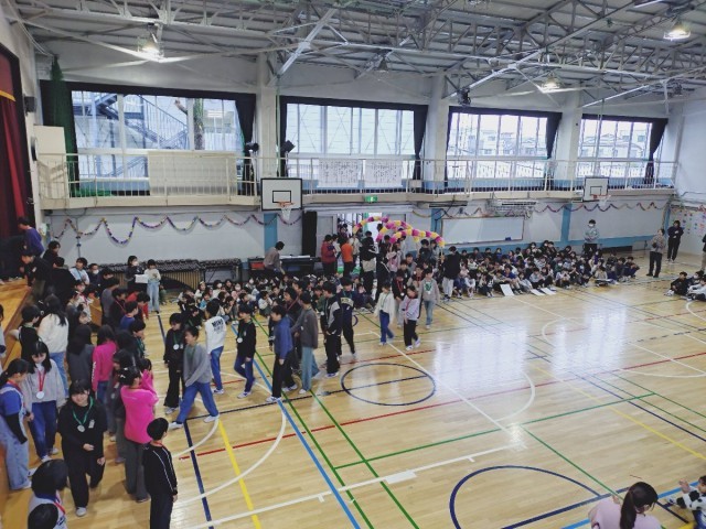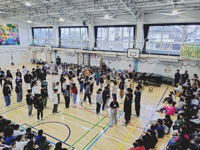 全校合唱で歌った「Believe」が体育館に響きました。