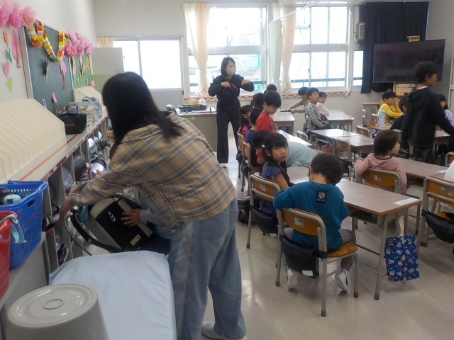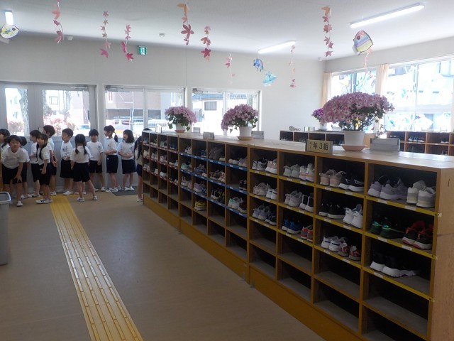 毎朝教室に来てお手伝いをしてくれる6年生は、とてもありがたい存在です。でも、きれいに整ったくつ箱も発育測定での並び方も、もう立派です。