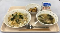 ・ごはん 鉄火みそ・切り干し大根のたまご焼き・もやしと小松菜の和え物・かみなり汁...