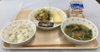 ・きんぴらごはん・しいらのさざれ焼き・じゃこ和え・小松菜のかきたま汁・牛乳