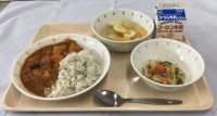 ・カレーうどん・わかさぎのから揚げ・わかめとえのきのごま酢和え・フルーツ白玉・牛...