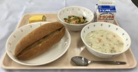 ・チリビーンズドッグ・クラムチャウダー・にんじんとツナのサラダ・バナナ・牛乳