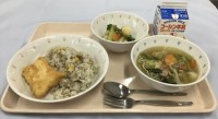 ・ごはん・大豆コロッケ・キャベツと小松菜のからし和え・きのこのみそ汁・牛乳