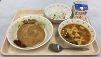 ・ピリ辛チャーハン・春巻き・小松菜と豆腐のスープ・牛乳