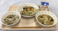・ごはん 鉄火みそ・わかさぎのから揚げ・さつまいもの五目きんぴら・豆腐すいとん汁...