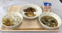 ・ごはん・大豆コロッケ・キャベツと小松菜のからし和え・きのこのみそ汁・牛乳