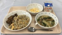 ・ごはん エコふりかけ・五目たまご焼き・水菜と小松菜の和え物・大根とえのきのみそ...