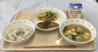 ・ごはん・厚揚げの肉みそかけ・小松菜とキャベツの炒め物・いろどり汁・みかん・牛乳