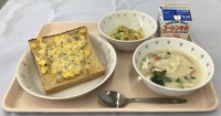 ・二色トースト(ココア・チーズ)・鶏肉と野菜のスープ煮・ベーコンポテト・小松菜と...