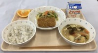 ・ごはん・厚揚げの肉みそかけ・小松菜とキャベツの炒め物・いろどり汁・みかん・牛乳