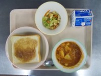 さんまごはん・牛乳・白菜の煮浸し・けんちん汁・菊花みかん