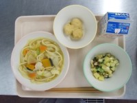今日はみそラーメンか豚骨ラーメンのセレクト給食を出しました。先生も含めて、みそラーメンが343人、豚骨ラーメンが230人でみそラーメンを選ぶ人が多かったです。みそラーメンはコーンがたっぷりあり、北海道で人気のラーメンです。豚骨ラーメンは今回はチャーシューの代わりに豚バラ肉を入れて作りました。博多で有名な濃厚な豚骨スープが特徴のラーメンです。今回はどちらも給食風に野菜たっぷりで仕上げました。