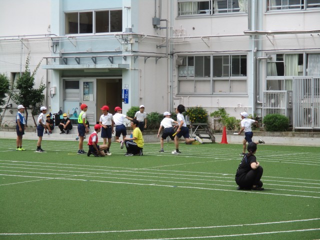 運動会練習、2年生は団体競技の「落とさず運ぼう★ボールリレー」がとても上手になってきました。