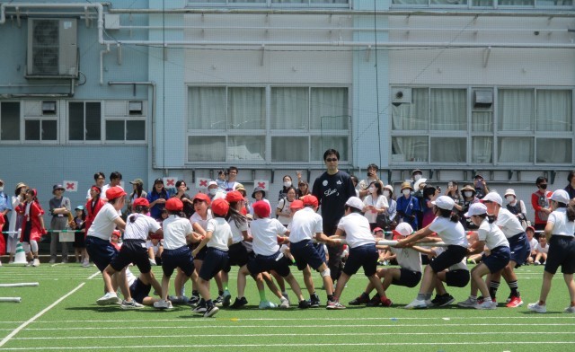 2年生はボールリレーです。慎重に、そして素早く運びました。