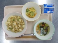 今日の給食の献立は、カレーピラフ、鮭のチーズピカタ、グリーンサラダ、チンゲン菜としめじのスープです。