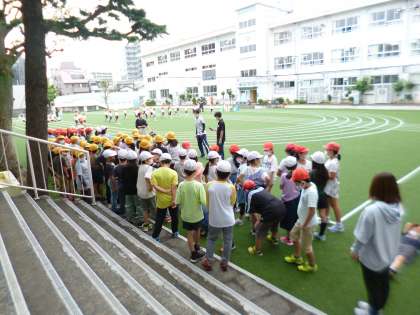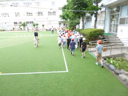 3年生が算数の学習で、1000mを実際に歩いてみました。一歩ずつ、数えて歩きます。かかった時間は12分45秒でした。子供たちは「そんなに歩いたんだ!」と驚いていました。