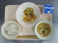 今日は納豆が付きます。1人1個ずつあるのでごはんにのせておいしく食べましょう。アンケート集計の結果、本校では納豆が好きな人が多いことがわかりました。