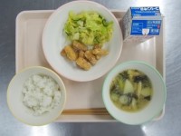 今日から7月になりました。今日は冷やし中華そば、ごまだれドレッシングです。これからは夏野菜がおいしい時期です。給食のメニューでもたくさんの夏野菜を使っていきます。今日の夏野菜はきゅうり、トマトです。トマトは、給食室でひとつひとつ皮を湯むきしました。苦手な人も食べられそうです。モリモリ食べましょう。