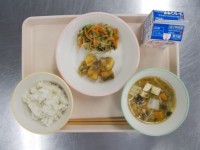 今日の給食ひじきと大豆のごはん・牛乳・わかさぎのから揚げ・カミカミサラダ・豚汁 ...