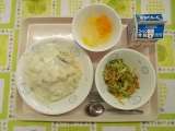 今日の給食の献立は、キャロットライスのホワイトソースかけ、じゃこサラダ、クラッシ...
