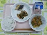 今日の給食の献立は、ごはん、鯖の文化干し、もやしのお浸し、変わりきんぴら、牛乳で...