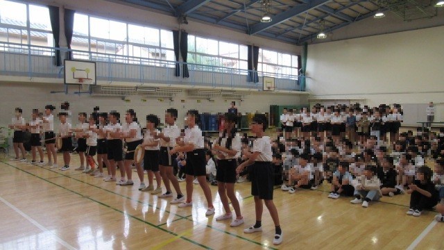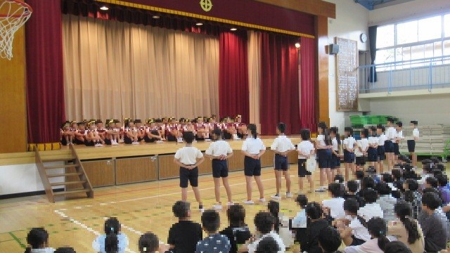 上南小の「本番」は、明日(16日(木))の午前の部。昨日(14日)実施した全校朝会の中で、6年生の「体育大会【壮行会】」を行いました!