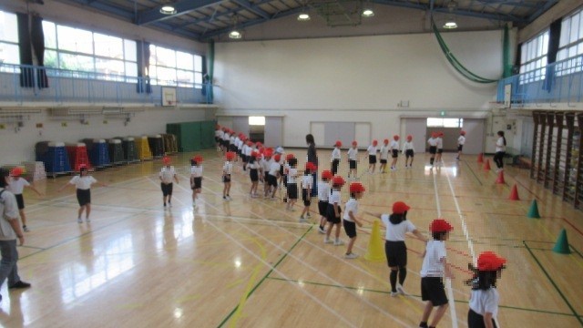 まずは、1・2年生。週末の雨の影響で、校庭のコンディションがよくなく、両学年とも「体育館で【表現】の練習」をしていました。1枚目の写真が1年生の様子。【表現】の基本の立ち位置を確認し、その後、曲に合わせて実際にダンス! 既に多くの児童が「基本の振付」を覚えていてビックリ! 身体全体を使って「楽しそうに笑顔で」踊る姿が印象的でした。2枚目の写真が2年生の様子。1年生の練習を見て驚いていたところ、2年生の練習を見てさらにビックリ!! 「基本の振付」を覚えているだけでなく、2年生は『隊形移動』の段階まで進んでいました。2年生は自分で踊るだけでなく、隊形移動の際に友達同士声を掛け合ったり、ダンスを教え合ったりする姿が見られ、感心しました。両学年とも、もうすぐ校庭に出てきますね…。頑張れ!1・2年生!!