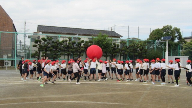 「大玉送り」は、試しのゲームを1回実施。1年生から6年生全員が力を合わせて競技に取り組んでいました。結果は…。。校庭には子どもたちの「元気な歓声」が響き渡っていました。