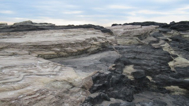 【地層見学】の場所は、神奈川県三浦半島の先にある『城ヶ島』。私・校長も初めて行く場所でした。本校所属の教員の中に「理科」を専門に学習してきた教諭がおり、当日はその教諭が「ガイド役」を務めながら、子どもたちをリードしていきました。私自身高学年の担任をする機会が多かったのですが、この理科「大地のつくり」の内容…、なかなか実感をもたせることが難しい単元で、教科書の写真や映像資料(動画)に頼らざるを得なかった状況があったのですが、現地に着くと、目の前にはまさしく【地層】が脈々と連なっており、子どもたちはスケールの大きさ!に驚いていました。途中、「化石」を探したり、きれいな「貝殻」を見つけたりしながら、歩みを進めていました。