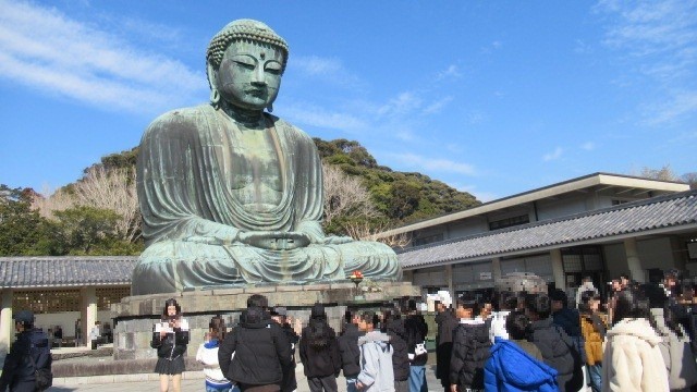 学校に帰る途中、鎌倉に立ち寄り【大仏】の見学もしました。実際に本物を見ることで、その大きさを体験的につかむことができました。また、鎌倉を訪れている海外の人の多さも見ることができました。