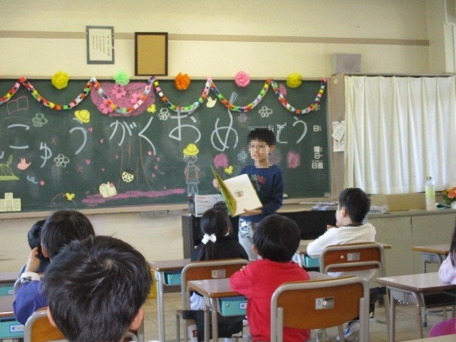 そんな【1年生】の学校生活を支えてくれているのが、最高学年・上南のリーダーである【6年生】です! 登校してからの朝の支度や、中休みの過ごし方に関わってくれています。今朝は、1年生のクラス全体に『読み聞かせ』をしてくれていた6年生がいました。中休みには、1年生と一緒に絵を描いたり、本を読んだり、腕相撲をしたりしていた6年生がたくさんいました。【1年生と6年生】の関わりが着実に深まってきています。ありがとう!6年生!!