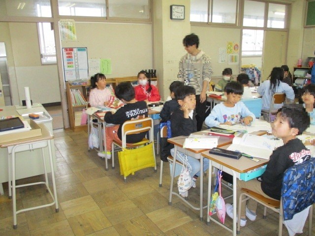 3年生と5年生は「クラス編成」が変わるとともに、「担任の先生」も変わりました。まさしく【新しい船出】と言えます。そんな状況の中、各学級落ち着いたスタートが切れています。3年生は、理科の学習で「タブレットを活用して観察・撮影した学校内の自然」について、クラスのみんなで発表し合っていました。また、国語の学習で「音読の仕方をグループで相談」しながら、グループごとに音読練習に取り組んでいました。5年生は、社会科の学習で「地球儀を用いて、日本の位置や他国の位置、また【北極・南極・赤道】」などについて確認し合っていました。道徳では「責任ある行動」をテーマに、自分の考えをまとめ、それを友達と意見交換していました。