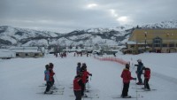 ソフトボールくらいの雪玉を作り、次に土台を作ります。その中にろうそくを立てます。点火は夜です。楽しみですね。