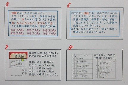 ・全く予想していなかった先生方の動きに、驚いて感激して、感動して感謝しました。普通ではこんなによくしていただけることはあり得ない先生方からの真心に大いに感謝しました。そこで、日本の文化・風習の一つとして、全校児童の皆さんに伝えておこうと思いました。