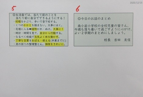 12月15日全校朝会「2学期も残り9日間」~学習・生活面で頑張ること~