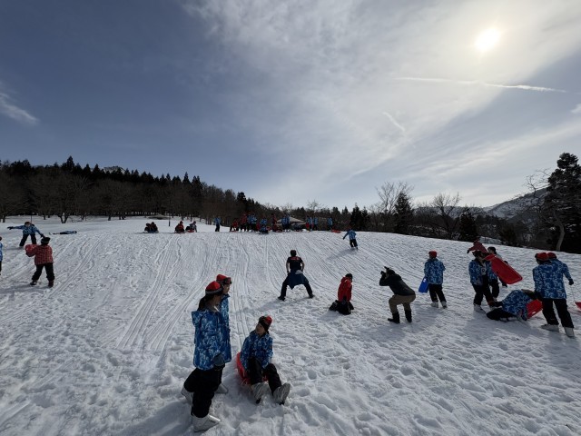 昼食後、雪遊びをしています。