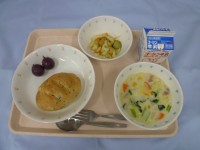 マーボー豆腐丼・牛乳・中華はるさめサラダ・ワンタン皮入りチンゲンサイスープ