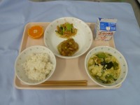 みんなの給食(SDGs給食)ごはん・エコふりかけ・牛乳・高野豆腐のからあげ・エコ...