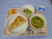 ごはん・牛乳・大豆コロッケ・キャベツと小松菜のからし和え・きのこのみそ汁です。