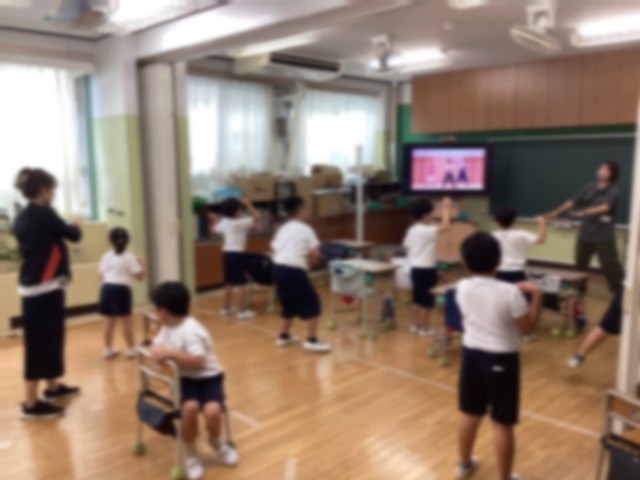 みどり学級は、来週17日に行われる区連合運動会に向けて準備をしています。この日は、区連合運動会に参加する学級全員で踊る「パプリカ」の練習をしました。また、今回、みどり学級が応援を担当するため、応援団長中心に応援練習をしました。