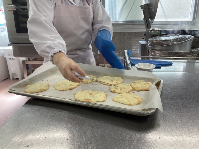 ほそいぼうは、おんどけい。きゅうしょくしつでは、やけているか、かならずおんどをはかって、かくにんします。