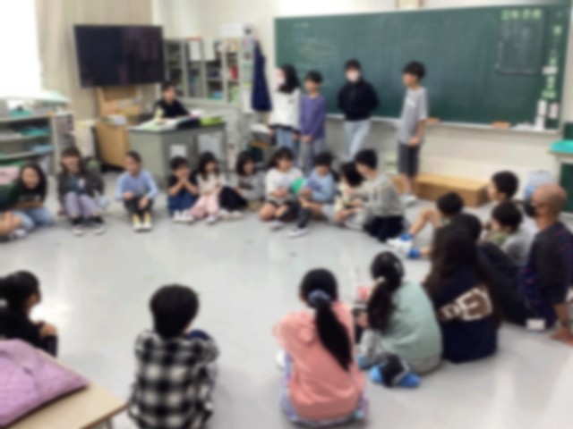 年間を通して、1〜6年生で構成する班(なかよし班)を単位に、遊びや交流活動を行っています。今日は、体育館と教室に分かれて活動しました。体育館では班ごとに決めた目標回数にチャレンジする大縄跳びを、教室では大きな輪になってボール送り遊びをしました。各班は6年生をリーダーに、目標や活動・遊びの内容を話し合いながら決めています。学年に関係なく一緒に遊んだり活動したりすることが少ない子供たちにとって、異年齢交流は人間関係の形成やコミュニケーションスキルの向上、話し合いを中心とする合意形成を学び機会として大切な活動の一つになっています。