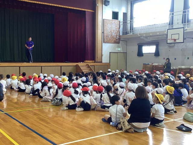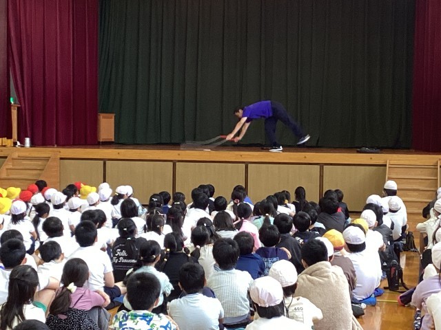 なわとびパフォーマーのふっくんが来校されました。昨年も、江戸川っ子なわ跳び出前授業として中小岩小学校に来校され、なわとびを使った様々なパフォーマンスを披露されました。今年は、今日と明日の2回、中小岩小学校で、ふっくんによる縄跳びのパフォーマンスとなわとび教室を開きます。また、今日は太陽の子北小岩第二保育園の皆さんが、明日は太陽の子北小岩保育園の皆さんが来校して、ふっくんのパフォーマンスを一緒に楽しみます!