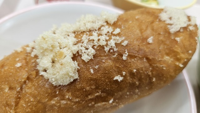 「シュガー」なあげパンなのですが、少量の塩がまぶしてあり、これがいい仕事をしていました。