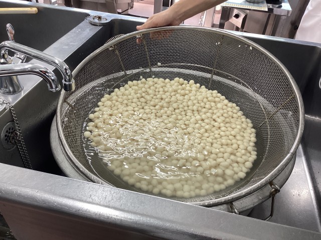 白玉団子は全校分でとてもたくさんのりょう。すべて手づくりです。