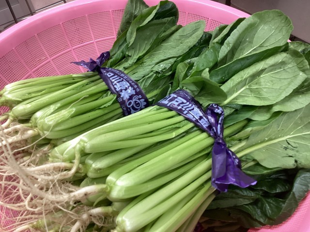 今日はこまつなきゅうしょく。すべてのりょうりに、こまつなをつかっています。