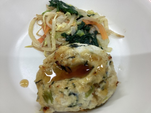 また、小松菜一斉給食の日には、区内の小学校が同じメニューで給食を提供します。今日は、上小岩第二小学校など小岩地区の小中学校が、中小岩小学校と同じメニューで給食を提供しています。さて、そのメニューとは、小松菜とツナ缶を炒めてごはんと合わせた「こまツナごはん」に、「小松菜のつくね」、「小松菜のおかかマヨ和え」、小松菜も入っている「具だくさんの味噌汁」と「牛乳」です。