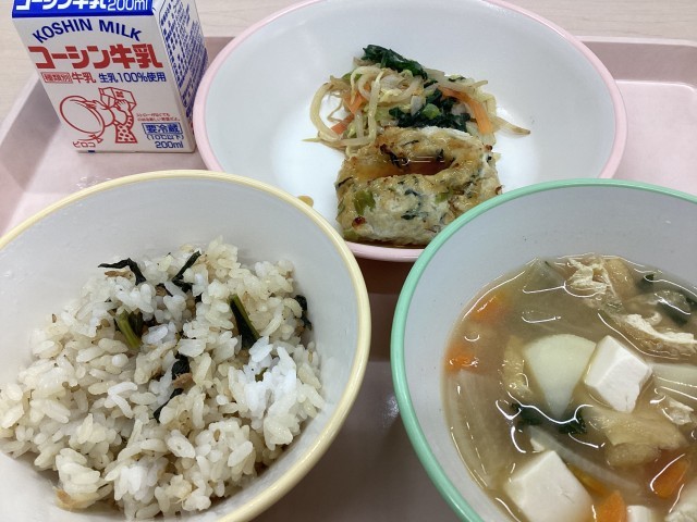 「こまツナごはん」小松菜一斉給食メニュー